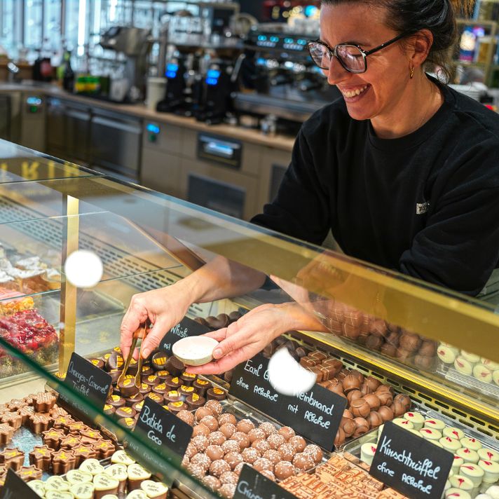 Genieße Frühstück, hausgemachte Mehlspeisen, Pralinen, frisch gepresste Säfte und Kaffee in bester Qualität.